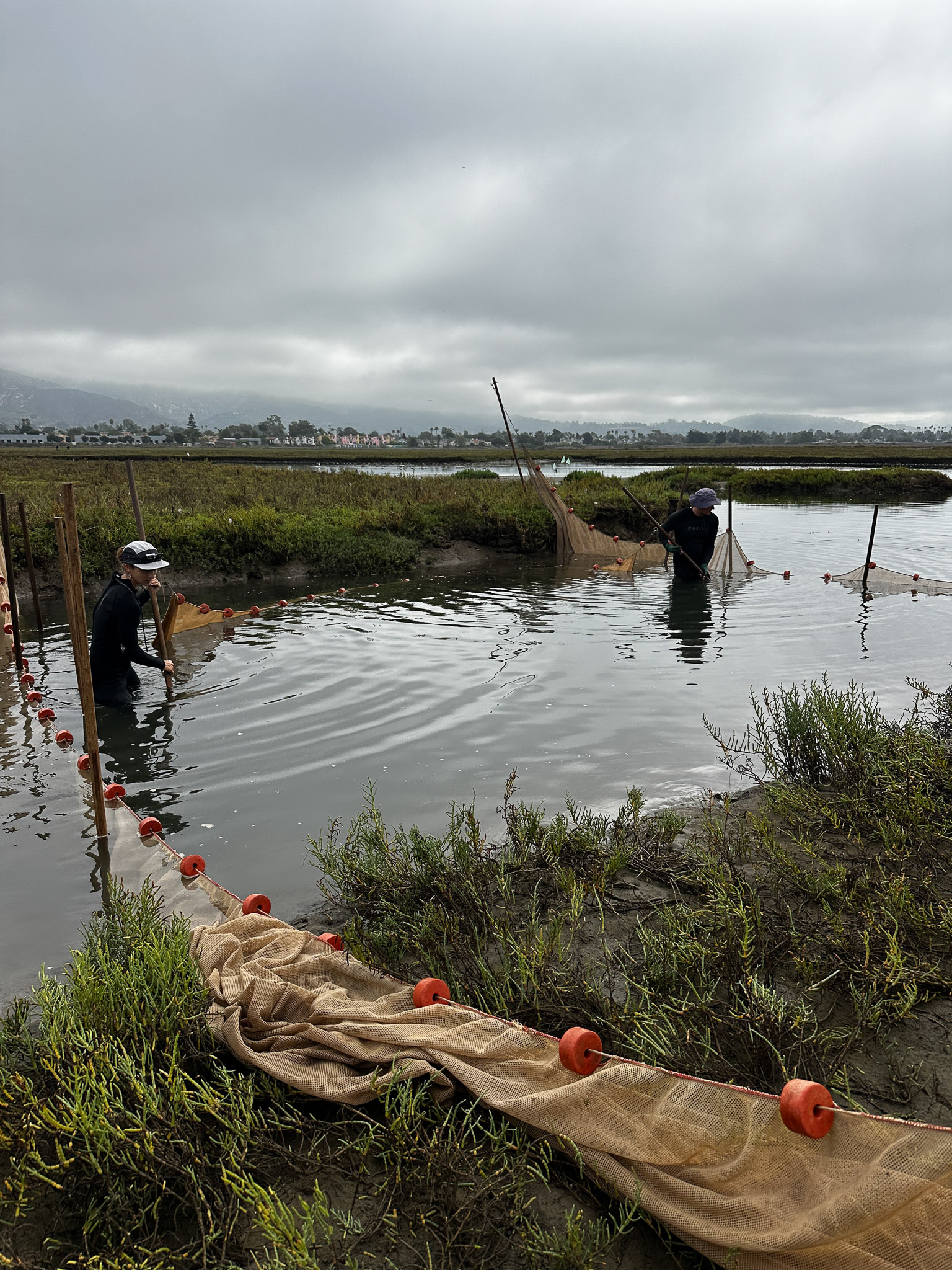 Within the wetland program, the restored San Dieguito site is evaluated relative to natural reference marshes. My role focuses on two of those reference sites (Carpinteria Salt Marsh Reserve and Point Mugu Lagoon) where I help run standardized fish and invertebrate community surveys, identify and process samples in the lab, and support QA/QC. I do not sample at the San Dieguito restoration directly, but our reference-site data provide the benchmarks used to assess restoration performance over time.4